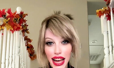 Jummy blonde reveals her transgender princess dick and plays around with it